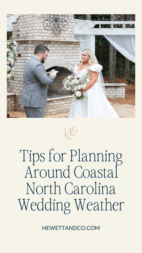 Weather will always be a variable, but it doesn’t have to define your wedding experience. With thoughtful planning and local insight, coastal North Carolina weddings can be both beautiful and seamless no matter the season. If you’re planning a coastal wedding and want guidance rooted in experience and local knowledge, I’d be glad to help you navigate the details! Get in touch and let’s create a wedding that’s beautifully designed and deeply personal.